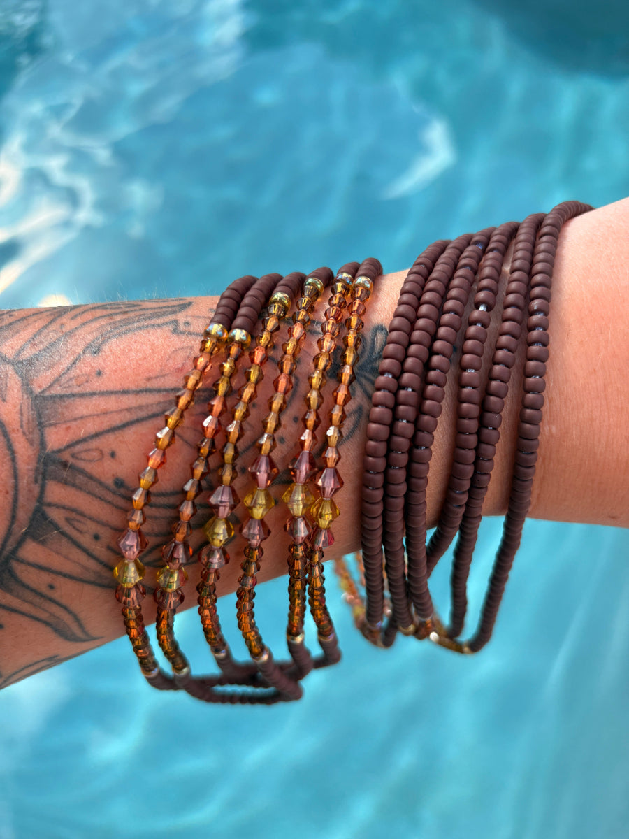 The Coco Caramel set radiates warmth and confidence, blending creamy neutrals and golden tones reminiscent of sunlit skin and slow island mornings. It’s the perfect strand for grounding yourself in your natural beauty and sensuality.