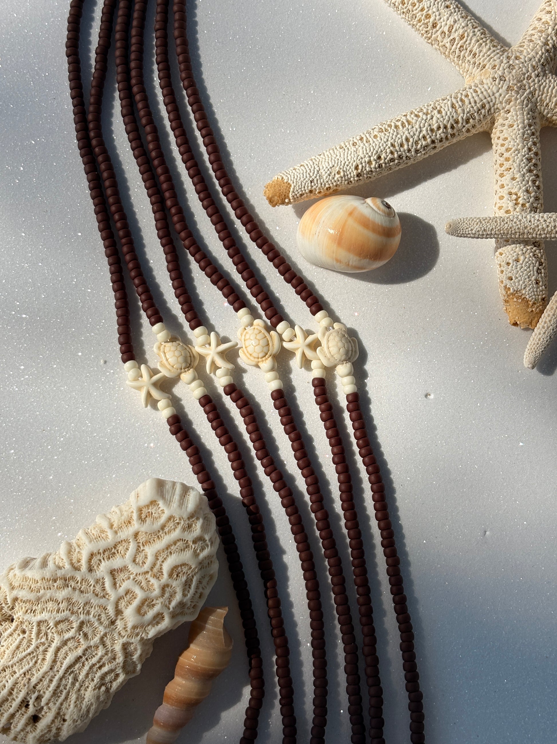 The Coconut Cream waist beads embody calm luxury—creamy whites and gentle neutrals that evoke sandy shores and slow mornings. Wear them as a minimalist statement of peace, purity, and timeless island beauty.