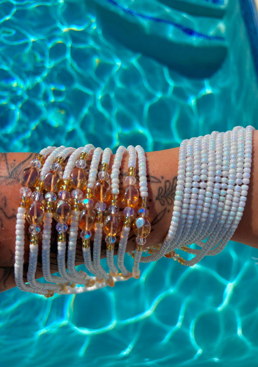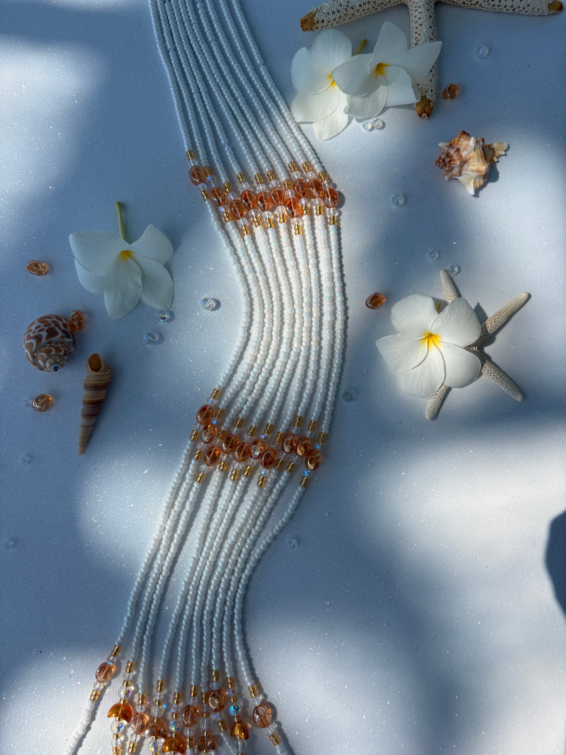 The Magic Within Her waist bead set is a radiant reminder of your inner power and light. Handcrafted with shimmering treasures from Barbados, this strand glows with the energy of self-love and divine femininity. Tie it on as a sacred adornment to honor the magic you carry within.