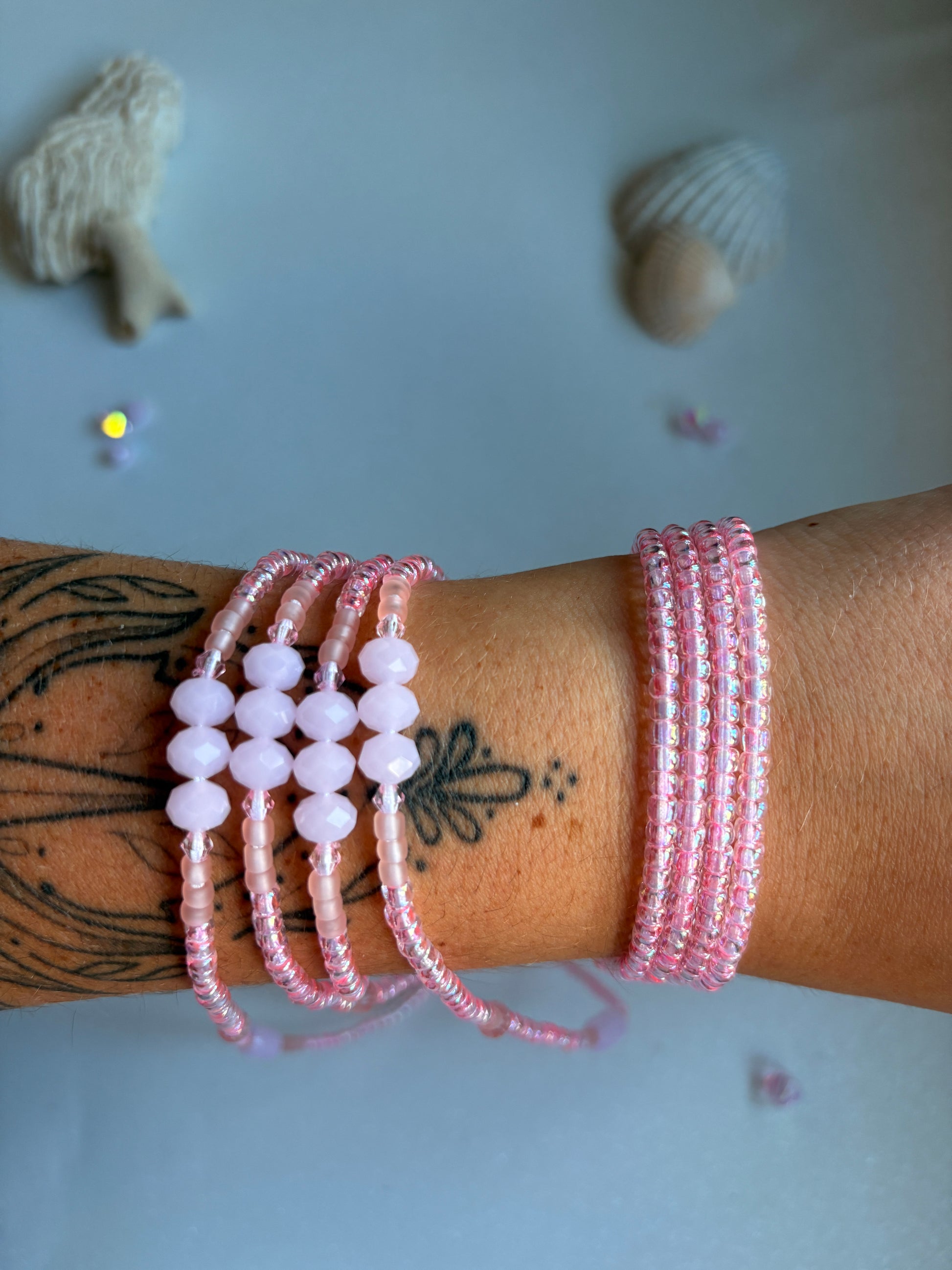 Ballerina dances in shades of blush pink and pearly soft tones — a delicate blend inspired by ballet ribbons, elegance, and quiet confidence. This set embodies softness with intention, made for the girlie who leads with grace but moves with strength.